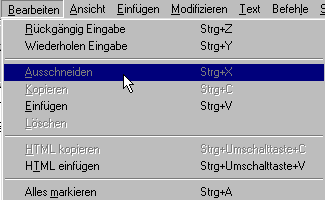 De Befehle Ausschneiden un Kopieren sünd geghostet.