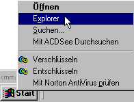 En Programm to'n Datein verwalten in Windows. Wenn dat narms to finnen is: Startknoop rechtsklicken, in't Kontextmenü is dat! Wählt Se den Indrag Explorer.