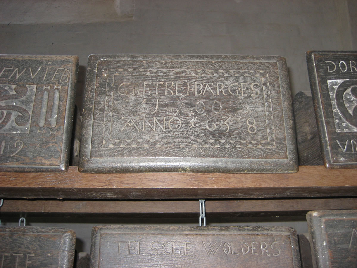 Ehrwördig sünd ok de olen Namen up de Schemel. Dor findt
