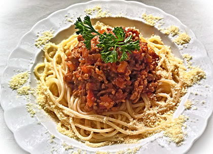 uns Besöök un mi wat Besünners kaken. Aver de "Bologneser Nudeln" hefft mi toseggt. Harr noch nie nich italieensch eten, ofschoonst dat woll Enn 1960 al en italieensch Restaurant in Bremen geev. (Wat de Buer nich kennt, ) Dat schull sik nu ännern. So veel Nies in dat Rezept! För Salami, Olivenöl un Parmesankees