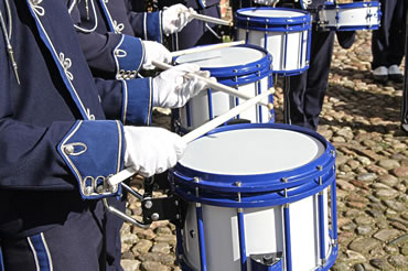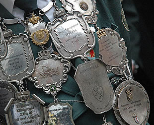 Dat Scheten trock sik över den ganzen Dag hen, so dat twischendörch 'n Masse Tiet to'n Vergnögen bleev. De Hauptattraktschoon weer denn dat "Fåhnenschwenken", wat Huusmeister Julius Lietz, låter Emil Schnoor, "Lorne" Marckardt un nu Achim Fey, ünnerstützt vun twee Trummlers mit ehr Trummelwarvels, kunstvull dörchführen dän, worbi all de Tokiekers de Mund apen ståhn bleev, vör luter Staunen un Bewunnern. Dree Dååg weern ok de flietigen Muskanten vun den Speelmannstog in de Gangen. Dat vele Marscheern, de lange Tiet op de Been, un vör allen ... hier mål 'n Lütten, dor mål 'n Lütten, dat weern Strapazen, un Klås kunn se dat genau anseh'n, wor möör se weern. Åvends, wenn de Königsschööt fullen weer, harr so männicheen Malöör mit sien runnen Fööt un weken Kneen, åvers wenn 't ok swoor full all kemen se wedder op ehr, wenn ok jackeligen, Been to Ståhn.