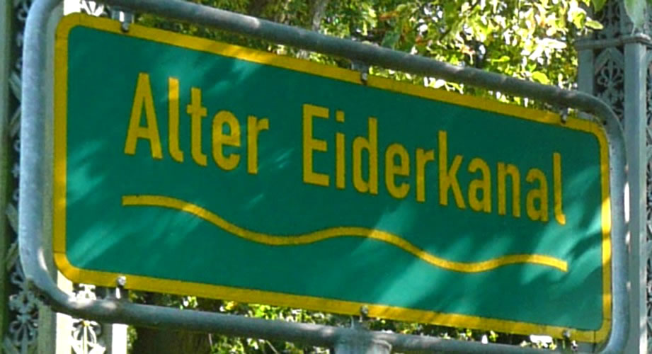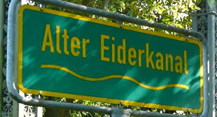 Up uns Fohrt müssen wi ümmer wedder anhollen un de Lüüd na den Weg fragen. De mehrsten wüssen gor nix vun den Eiderkanal un de Slüüs. De Landstraten güngen to'n Deel dörch Feller un över Koppeln. Wi hebbt sogoor enen Trecker anhollen. De Treckerfohrer kenn sik ut, he wüss Bescheed. Wi harrn en Navigatorgerät bruken kunnt! Toletzt hebbt wi mank dickes Gestrüpp enen Wegwieser sehn. "Alter Eiderkanal" stünn dor up. Wat weern wi froh.