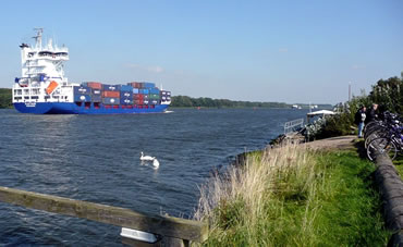 Deep beindruckt möken wi uns up den Trüchweg. Mit uns Auto sünd wi aver vörher noch den Barg daal na den Kaiser-Wilhelm-Kanal föhrt. Hier güng fröher mal de Straat wieder. Se weer dörch den Bu vun den niegen Kanal sotoseggen in't Water fullen. Hier weer unsen Weg to Enn, wi müssen wedder ümkehrn un över de Feldweeg trüch.