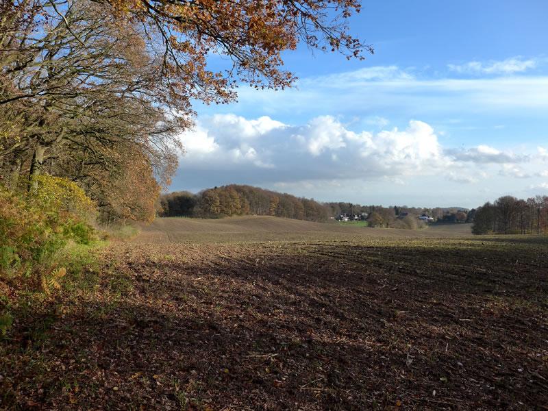 Dat weer Harvst un de Woold lüüch in smucke Harvstfarven.