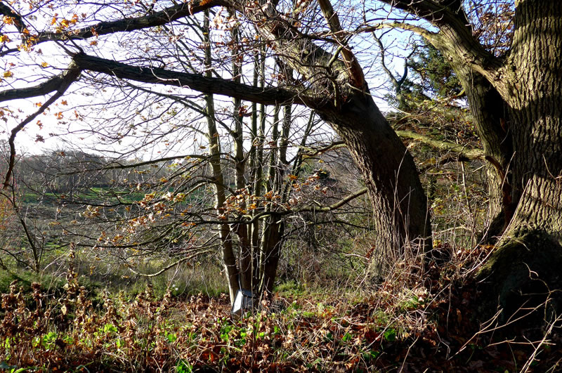 blots ümmer deper in den Woold. Af un an schimmer en eensam