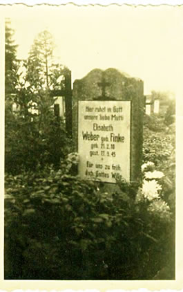 Wi, dat weeren mien Mudder, Oma un Opa (Öllern vun mien Vadder), mien beid Bräuder un ik. Anfang September weer de harde Marsch to Enn. Wi harrn wedder een Dack övern Kopp. Denn slöög dat Schicksal swoor tau: Mien Mudder müßt uns Anfang September verlaten. De Fautmarsch wekenlang strapazeerte ehr. Se weer Tohuuns all swack un mickerig. Oma un Opa weern sößdig Johr old. Nu haarn se noch uns drei Bengels uptotrecken. Bloots wi harren nix.
