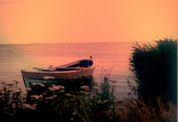 Jungs al up em töven. Wedder schütt he sienen Kopp, üm dit Argernis lostowarden. Denn de Avend is to schöön. Rood steiht de Sünn över dat Osterholt an'n Heven, över de Rie-Gravens stiggt all Nevel up. Dunst liggt över den Bodden. Den Schoolmeister ward lichter üm't Hart, un liesing singt he vör sik hen sien Heimatleed vun Martha Müller-Grählert: "Wo de Ostseewellen trecken