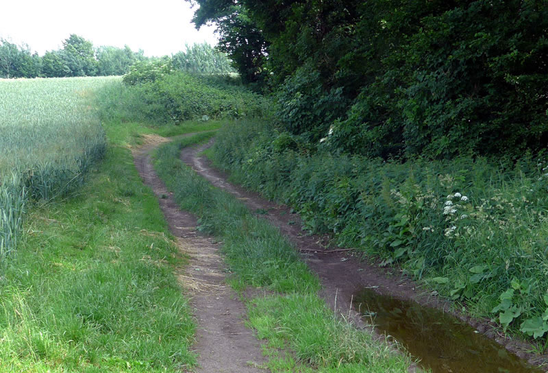 Feldweg föhrn. Deelwies harr de Weg grote Slaglöcker,