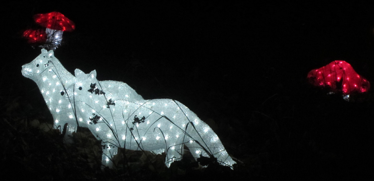 Mit grote Oogen stahn de lütten Geister ann Tuun un laaten luudhals ehre Begeisterung tau hüürn, wenn se dei roden Pilz, dei Wölf ', dei Iesbären, dei Schwaans, dei ehr uut den Rostocker Zoo schon bekannten watschelnden Frackdrägers, Iesboorn un anner "Gelichter" seihn. Poor Jungens harrn dei Lüchtwürfel besett un trampeln vör Freud'.