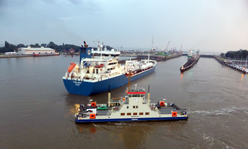 Freuh an neegsten Morgen sull dat dörch de groote Slüüs vun Brunsbüttel gohn. Sommerdags stoht dor Barg Lüüd un froogt de Kümo-Schippers, wat se sik nich achtern anhangen köönt. Op de Ort wulln se dörch den Kanool komen. Seilen dröffst du in Kanool nich un ok mit'n Butenborder fallt di vun dat Geratter bald de Ohren af. Sik schlepen loten is de ideole Weg, üm no de Oostsee to komen. Ik harr in miene Hobentied mit Kümoschippers to doon un wuss genau, woans ik jem ansnacken müss. Roop du mol "Herr Kapitän" to so'n Ammerkacker ut de Lühe; keen Oos kiekt hooch. He weet gornich, dat he meent is. Schree "Schipper" un he dreiht sik no di üm un will weten, wat du vun em wullt. En Tallymann is för'n Schipper en heel wichtige Person. Wenn de Tallymann sik vertell, fehl den Schipper Lodung bi'n Löschen. As ik een vun de Schipper vertell, dat ik Tallymann bün, hett he uns glieks inlood, dat wi uns bi em achtern an den Kümo anhangt. Gerd geev siene Lien as eerste röber un nehm uns op'n Hoken. Denn güng dat ut de Schlüüs rut un wi tuckerten sinnig dörch den hunnert Kilometer langen Kanool. Wat mookt Schippern doch för'n Spooß. Mi full op, dat Gerd sien Schipp achtern keen Nomen harr un ok de Vereen fehl. Op miene Froog vertellten de beiden, dat se mit de Restaurierung vun jemmer Schipp grod fardig worrn weer un se harrn sik noch keen Nomen utdacht. Se weern noch an öberleggen un wulln dat op düsse Reis klormoken.