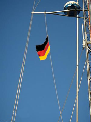 een vun mien duhnen Kamraden. Na, ik denn los. Heff de Lien vun'n Achtermast haalt. Heff ehr vun de Klampe lööst. En kotten Ruck, un zack keem de Lien vun'n hogen Mast an Deck flagen. "Peng" möök dat. Zack, fix opschaten, un af in de Mess. Dor woor ik mit groot Halloo begrööt. Vundaag föhl ik mi gor nich mehr heldenhaftig, wenn ik dor an denk. Dormalen weer ik de starke Typ, de Jungtimmermann, de de Flaggenlien ut'n Mast trocken harr. Sorgen möök ik mi nich. Lichtmatroos Willi Bahr ut Cuxhaven wöör ehr morgen wedder rinmaken. He wöör de Lien nehmen un ehr wedder inscheren in den Flaggenblock hoch baven in den Achtermast. Dor buten an de Rah dree Meter vun'n Mast weg in't Nix. Eenfach so. Klaar. Nu woor uns Snapsliek op de Back (so warrt de Disch an Bord nöömt)