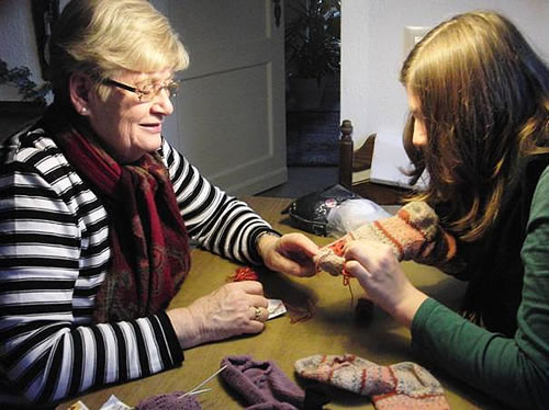 Uns Ekelin Marie liehrt vun Oma, woans man mit Schaapswull noch hüüt Strümp stoppen kann! Wenn ik dat man 1957 all weiten harr, denn wast ik nienich vunt