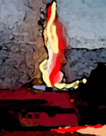 Na 'n tehmlich lange Tiet lööt dat Bullern un Dunnern na. Uns mit Fichten-Hoors utkledte Schosteen weer utbrennt un de Sleppbalken harrn keen Füür fungen. Dat Muurwark vun'n Schosteen harr standhollen. Laat in de Nacht weer de Gefohr vörbi. Afmaddelt un natt Dat gifft denn ok woll Engel, de mit Füür