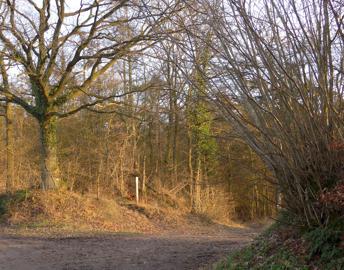 sümen unsen Weg. De Februarsünn schien up enen Woold un
