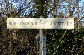 en oolt Stratenschild anbröcht: Alte Travemünder Landstraße.