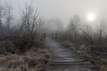 De Moorpadd bukkelt un mullt lang vöör sükk hen an d Küstenkanoal. Dor achter sticht dat Hochmoor liek an. Boaben steit Jan un tööft. Dat is de achuntwintichste August nägenteinhunnerdveertich.