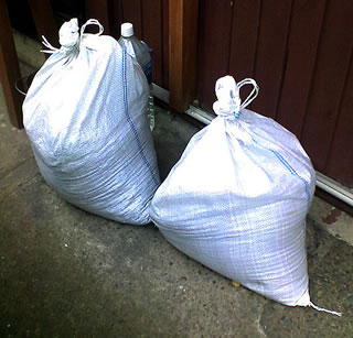 Denn weer för mi dat Wunner vullkamen. Ik kreeg för mienen Express-Zeddel söven Säck uthännigt. De kunn ik nu mit en utlehnte, wat wackelige Schottsche Koor in den Keller vun uns Flüchtlingslager bringen. Twei Tuuren weern nödig.