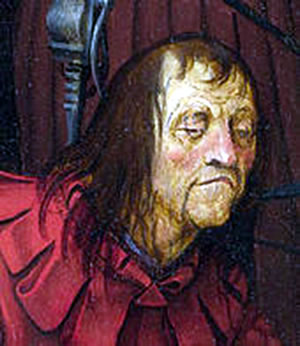 Gau backen wi swarte Moddereer to lütte backige Klümp un smeten em de vör de Fööt un an sien Jack. Jeedmol wenn wie em drepen, verfeer he sik asig, trock den Kopp in un krütz de Arms över sien Slapphoot. Eerst wimmer he blots, denn flöökt he un opletzt füng he an to blarrn. Dorbi hoppel he jümmers gauer un fuchel mit en Knüppel, up den he sik mennigmol afstütten dee. Vör de iesern Karkhoffdöör keem dat Jachtern to'n Enn. Sien Bost güng up un dal. Denn dreih he sik noch en poor mol üm, snuuv un snater un weer hoppedi achter de Kapell verswunnen. Dat nächste Mol dreep ik em tofällig, as he an so'n luerlütt Huus stünn und lüttje Wiendruven vun en Spaleerplant afsnieden dee. "Da!", sä he un lang mi en poor Druven hen. O mannig, smecken de suur! Annerndags heff ik em sehn, as he sik mit'n Schottsche Koor afmarachen dee. He kunn den Kantsteen nicht rupkamen. Avers to tweet hebbt wi dat doch schafft. Un denn beed he mi in sien Huusdöör rin.