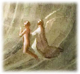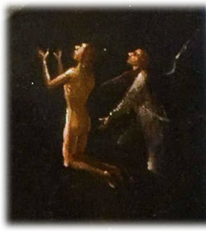 An den Rand vun dat Bild, wo de Figuur noch in't Düstere sweevt,