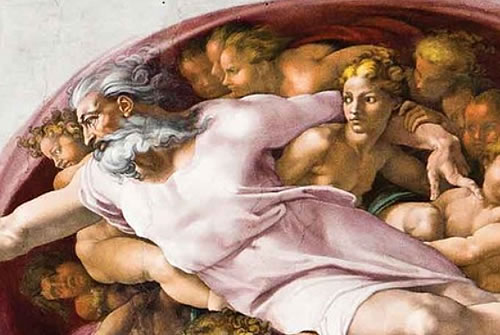 Eva in Gotts Schöpferarm. Fresko vun Michelangelo Buonarroti