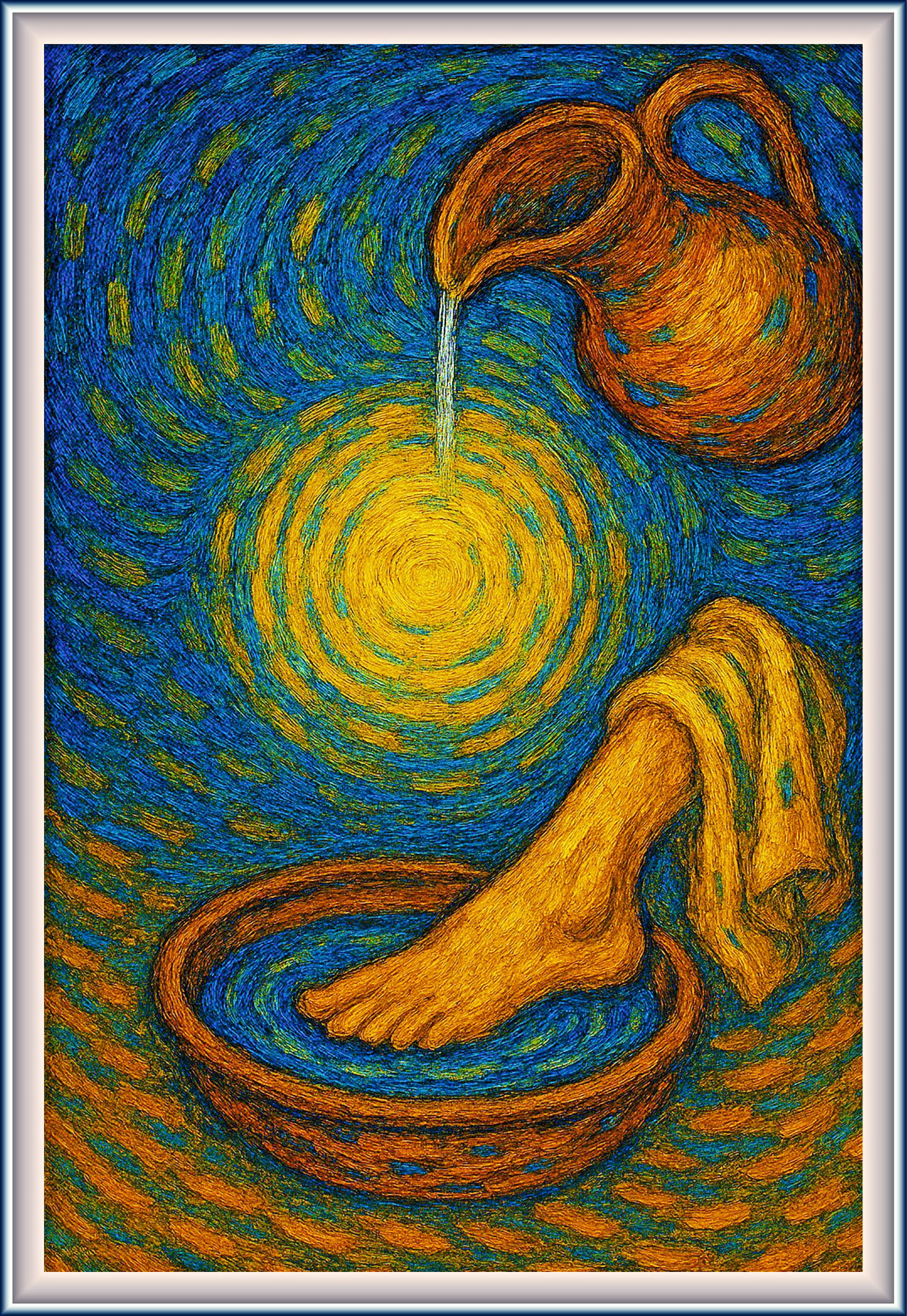 Jesus waschket dei Jünger ehre Fäute. Bild-Idee: