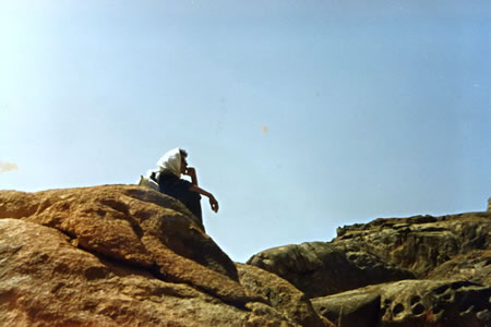 Bi uns tohuus weern dat grote Festdaag, ik denk, Kaarfriedag weer de gröttst överhaupt. Verstahn heff ik aver nich recht, woso Ostern dat gröttste Fest is. Woans sik Minschen an disse Festdaag ansliekern, dat heff ik vör vele Johr in "Bruukwiesen ut fröher Daag. Oostern" upschreven. Dat hett mit Jesus un Krüüz un Uperstahn nich veel to daun. Hüüt will ik maal wat wieder gahn. Ik heff al måål vertellt, dat mien Fru Inge un ik 14 Daag in Jerusaleem för de Hilligen Steden veel Tiet nahmen hebbt. Wi wullen luschern, wat de Steden uns seggen kunnen. Inge sinniert vör'n Felsendoom in Jerusaleem 1999. So in sik kiehrt kann he sien, de Felsendoom in Jerusaleem, un dat Mystische, dat Geheimisvulle, dat Numinose verbargen. Över Hilliges ward Hilliges stülpt. Ünnen liggt en groot Fels, up den seiht de Moslems de Haufspuur vun den Schimmel, mit den Mohammed in'n Himmel sprungen is. Dat is ok de Steen, wo Abraham Isaak oppern wull. De Juden harrn den Barg, de ok en Dööschsteed weer, köfft un ehre twei Tempels naeenanner buut. Ehr Hillige Barg! Un dor sittst du denn in'n Schadden, de Larm vun de Stadt is kuum noch to hören. Morgen staht sik denn villicht nau hier wedder Moslems un israeelsche Suldaten gegenöver un gludert sik böös an. Wenn't man dorbi bleev! Wi hebbt up vele Steden vun den Barg Moriah vele Stunnen tobröcht, seten, keken, dröömt. De Steed is as de Grote See! Se kann even liggen, licht schwunken, sieden Winnen gahn behootsaam röver. Un se kann toven, brüllen un krachen mit teihn Meter hoge Wellen, de daalstört. De Barg Moriah un de Grote See! Kannst de verglieken. Un villicht ok uns Leven? Muttst aver still sien, lange Tiet still sien. Orrer Du sittst still hooch baven in de Wööst Sinai un luscherst in di rin. Ik heff uns Bargföhrerin Ela aflicht. Se seet dor in ehre Heimaat, de se harr verlaten müßt, lange, lange Tiet. Truur weer se, nix as Truur. Tranen kullerten över ehr Backen. In de Stillnis harr se Antern kregen up Fragen, de se nich stellt harr, de aver deip in ehr Seel verwussen weern. Bloots wokeen still is un mit een tosamen, de ok still is, de kriggt Anter up de sworsten, vertracktsten Fragen.