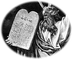 Von Moses will man weiten, dat hei as Shn von hebräisch Öllern ut'n Stamm Levi, dei inne ägyptisch Slawerie läwen däd, in't 13. Johrhunndert v. Chr. in Goschen (Ägypten) up'e Welt keem. Tau disse Tiet wier Ramses II. von 1279-1913 v. Chr. dei König in Ägypten un harr Order gäben, jeden israelschen Jung dod tau måken, dormit dei Israeliten in Ägypten nich werhand nähmen. Un dor fangt dat Wunner all an, denn dei Mudder ut äben dissen Stamm Levi tünt in ehr Not 'n Beisenkorff (Binsenkorb) un sett em denn in'n Nil ut. Dei Ramsesdochter finnt dat lütte Wörm, bringt em an'n Hoff un taufällig ward sien eigen Mudder as Amm' anstellt un näumt em denn in ehr hebräisch Mudderspråk Mosche. Mosche, dat wier dei, dei ut dat Wåder ruttreckt wür un ward låters up düütsch denn Moses heiten. Hei mt as Schäper slawen un as hei so üm dei vierdig Johr olt is, schlöcht hei 'n ägyptschen Upseiher dod, dei 'n Landmann von em malträtiert harr. Nu blifft Moses nix anners nå as uttauneihn. Un denn is hei 40 Johr inne Wüst ünnerwägens, üm mit sien Volk in't hillig Land Kanaan, dat hütig Palästina un Jordanien, taurüchtaukihren. Dor hett hei denn in't hoge Öller von 120 Johr üm 1407 v. Chr. in Nebo (Jordanien) dei Welt ok wedder verlåten.