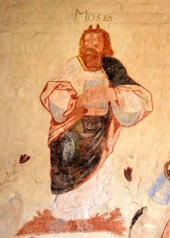 Hett sik dei Måler den Moses von Michelangelo (1475-1564) inne Graffanlåch för Papst Julius II. in Rom taun Ogenspeigel nåhmen, dei von 1513-1515 ut Marbel schlågen wür, orrer an den ut Holt schnitzten Moses in't Chorgestäuhl 1491 inne Stiftskark tau Tübingen, dei üm disse Tiet ehr hütig Utseihn kreech; orrer wier dat dei in Neapel målte "Moses mit dei Gesetzestafeln" von denn Spanjer Jusepe de Ribera 1591-1652)? So würn Moses as Wandbild in Kirch Rosin Hüürn upsett' un ok in't kolorig Glasfinster von 1867 inne Pfarrkark von St. Collen in Llangollen/Cornwall lüchten Hüürn up'n Kopp von Moses.