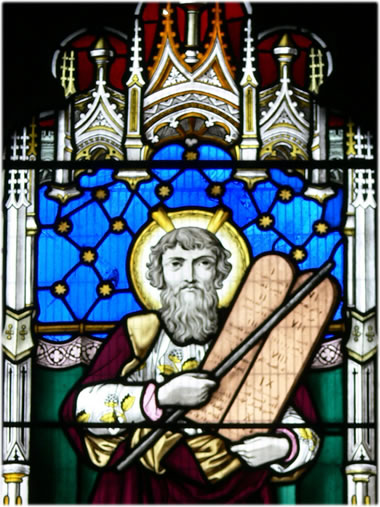 As man hüt weit, würn dei Geschichten üm Moses in't 5. Johrhunnert v. Chr. in fief Bäuker upschräben, dei up Hebräisch dei Thora, up Latinsch dat Pentateuchus un up Düütsch äben dat Pentateuch, dat "Fief-Rullen-Bauk" orrer dei fief Bäuker Moses heiten un den iersten Deil inne Bibel von Juden, den Tanach, un ok inne Bibel von Christen, dei Hillig Schrift, utmåken. So is Moses dei Prophet bi Christen un Juden un sülfst bi Muselmanen is hei einer vonne Propheten in'n Koran. Moses sall lücht un stråhlt hemm', as mit dei Gesetzestafeln von'n Barch Sinai tau sein Lüd rünnerkeem äbenso as dei Ring inne Ringparabel ut "Nathan dei Klauke", in wecker Lessing vertellt, dat 'n Vadder taun echten Ring noch twei glieke anner måken lött, dormit keinein von sien drei Shns mitkriegen sall, wecker Ring dei würklich echte un dat kein Globen bäder as dei anner is. So is dat ok mit Moses. All drei groten Religionen hollen em för ehrn Propheten, doch as dei Christen in't 8. Johrhunnert anfüngen, ut denn hebräischen Text dei "Vulgata", dei latiensche Bibel tau måken, dunn is dat mit dei Hüürn passiert. Dat hebräisch Wurt "Kehren" för Stråhlen hemm' dei Schriftgelihrten as "Cornu" för "Huurn" hollen un so kreech Mose nich den Hilligenschien, sonnern Hüürn upsett't.