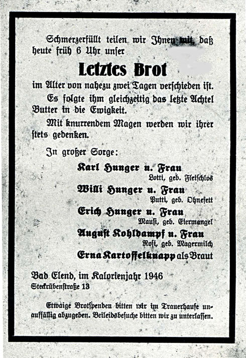 So kaamt wi to Di in Tieden vun groten Hunger hier