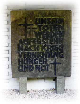 Wo lang noch? Wo lang noch warrt de Kränz daalleggt in uns Karken, an de Gedenksteden un an de Steen in uns Dörpen, op de de Naams vun de Doden ingraveert sünd? Ole Lü sühst dor mehrst. Naja, sühst meist överall in Düütschland ole Lü. Un dat liggt nich doran, dat de jungen Lü in de Kriegen doodbleven sünd Dank Gott! , sünnern bloots doran, dat vele junge Lü gor nich boren woorn. Bald hör ik sülven ok to de olen Lü, jung bün ik al nich mehr. Un düt Johr eerstmaals mit na de Gedenkfier gahn. De mehrsten jungen Lü hier sünd vun de Füerwehr, de bi de ganze Saak dat Leit hett. Dat Gedenken is wördig, de Reden sünd good. Minschen, de den tweten Weltkrieg beleevt hebbt, sünd noch dorbi. Man dat Gruun ok vun'n eersten Weltkrieg warrt kloormaakt. Verdun een Steed, 6000 Dode per Dag, 700000 in wenige Maanden... Sinnlose Dode. Junge Dode. Wat wichtig is: Wenn dat Erinnern an de Schrecken vun'n Krieg ophaalt, steiht de neegste Krieg dicht bevör.