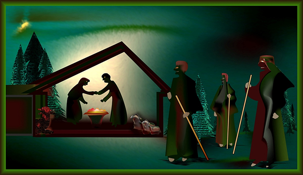 beide, Maria un Josef, dortau in dei Krüppen dat Kind.