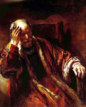 Karken: Dei is uck all heller old. Un an Je öller ick wer, ümso dröcker richte ick mi in. Mien Huus, mien Waogen, mien Gorn! Un dann fallt dat heller schwor, maol wat Neies tau waogen un sick wer up'n Patt tau maoken. Gott legg mi mit Abraham an't Harte: Bliew seläwe nich staohn. Waog dat, uck in't Öller maol rut tau gaohn, rut ut dienen Olldach. Woag maol ein paor Träe in't frömde Land un verseuk di an neie Upgaowen. Dor teuwt villichte noch wecke up di! Du traust di dat nich tau? Du moss dat ja nich alleinig maoken! Gott giff Abraham sienen Sägen för den neien Wäg. Hei giff üm uck di. Biller: Rembrandt, C.D.Friedrich