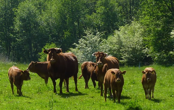Up de Wisch achter den Tackeldraht-Tuun stünnen brune Kööh.