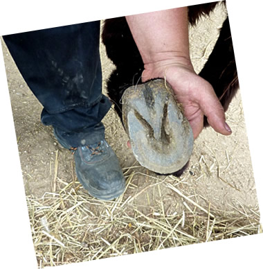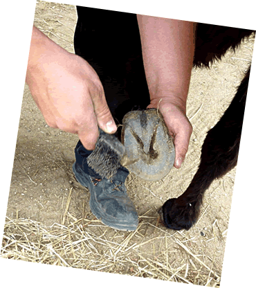 En Hölpsmann böör een na den annern Huf vun Lisa in de Höcht un kratz mit en scharp Mess den Dreck ut de Ritzen.