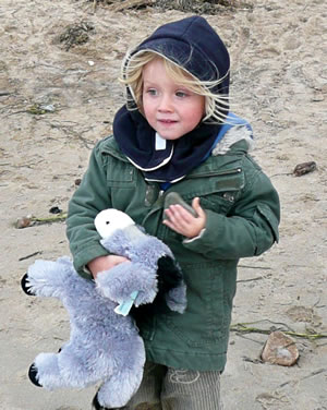 Se keken sik den lütten Dalli an. En Fru mit en Hund weer