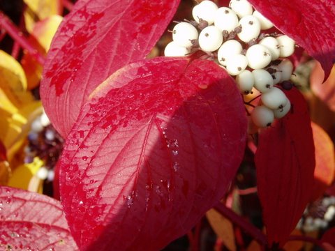 Un da liggt al dat Cornus-Blatt, ganz rood.