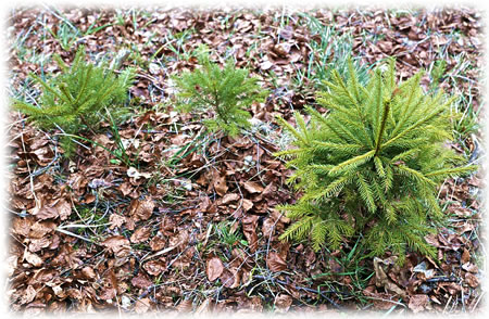 Dannenholt de drögen, affullenen Äst un Sprock vun'n Wohldbodden