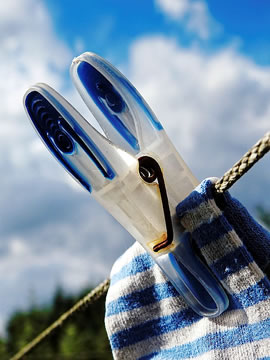 "Lååt mi doch los, du olle Knieptang, du!", sä een dorvun un trock un tarrt un wull sik losrieten. Åvers de Klammern helen fast: "Hier bliffst du, bit du dröög büst", sän se, "un wenn de Sünn so wieder schient un de Wind so wieder blåsen deit, warrt't ok gor nich mehr lang duern!" Mit dat Dröögwarrn harrn de Wäschstücken dat