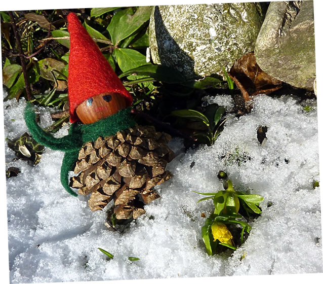 Ok de lütten Winterlinge harrn de Küll goot överstahn. Ünner de Sneedeek harrn se sik versteekt un keken nu mit ehr lütten licht utfransten Köpp in de Sünn.