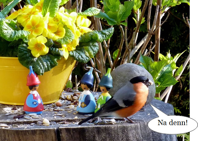 Dat harr de Gimpel, mien Huuswirt, glieks mitkregen. He seet baben in de Hortensie!