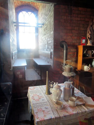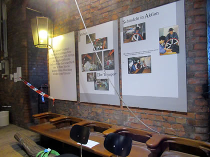 di na rechts. Dor is en lütten Ruum mit Andenken. En Mann hett
