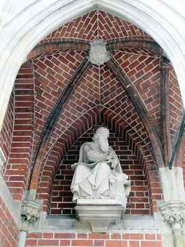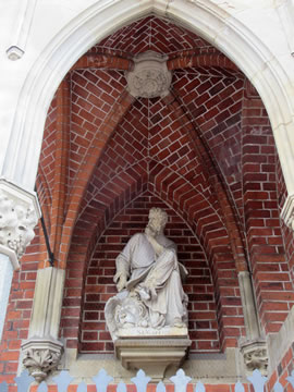 An de Buten-Fassaad vun de Kark sünd mehrere Marmor-Skulpturen in'n neugotischen Stil vun Aposteln ut't niede Testament. De hett de düütsche Bildhauer August Albert Theodor Herzig (1846 born in Hamborg, storven 1919 in Dresden) al 1888 maakt.