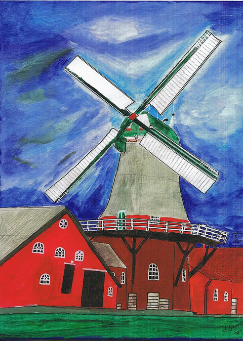 Düt Bild beschrifft, liek as de Schippswarft, mien persönliche Heimat. As Kinner weern wi heel faken to'n Angeln in den Kanaal, de direkt vör de Möhl löppt. Kannst best erkennen, dat dat Bild fröh maalt is