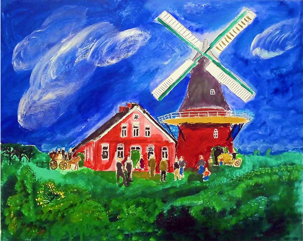 Vun düsse Möhl is hüüt bloots noch de Stump to sehn. Ik heff se in ehr beste Tied maalt, mit Peerkutsch un Möllersfamilie dorvör.