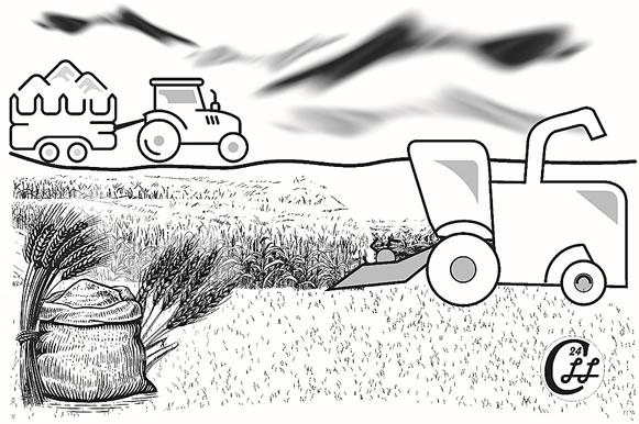 Stroh un Kaff süht man achter dei Maschine waihn.