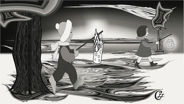 Dei Molber Kinner gaoht mit ehre Bummelaterne,