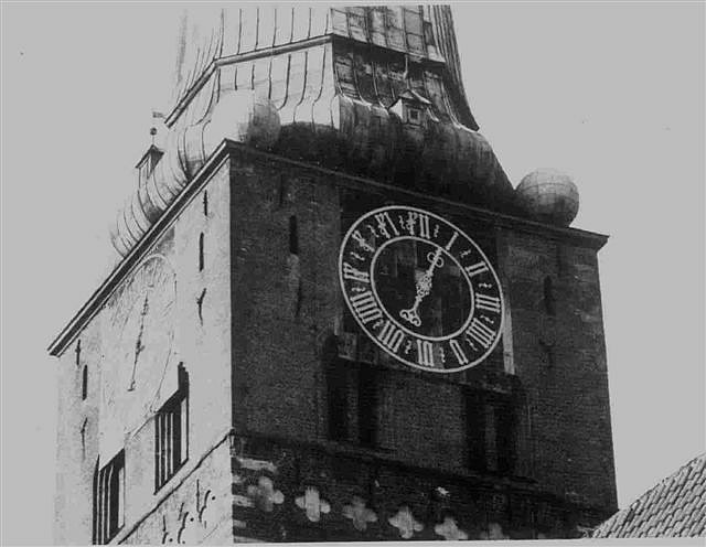 baben sünd rundüm veer grote Zifferbläder vun de Klock
