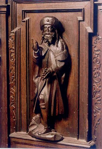 Na de grote Orgel geiht en Wendeltrepp hooch, vull vun Snitzwark. Langfingers