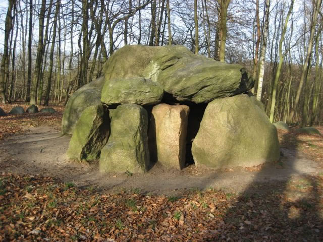 he hooch, un de Anlaag hett so bi hunnert Meter in'n Dörchmeter. Wi föhrt en lütt Stück wieder un stiegt denn glieks wedder ut, denn hier liggt en Hünengraff ut de Steentiet. Dat is goot wedder trecht maakt, un wenn een nich bang is, kann een dor ik rinkrupen. Weltberühmt is dit Graff. Heinrich Mann hett dor vun schreven in sienen "Professor Unrat". So'n Grafstellen gifft dat hier en ganze Reeg in den Waldhusener Forst. Wenn wi nu na rechts afböögt, denn kaamt wi na den "Ranenbarg"